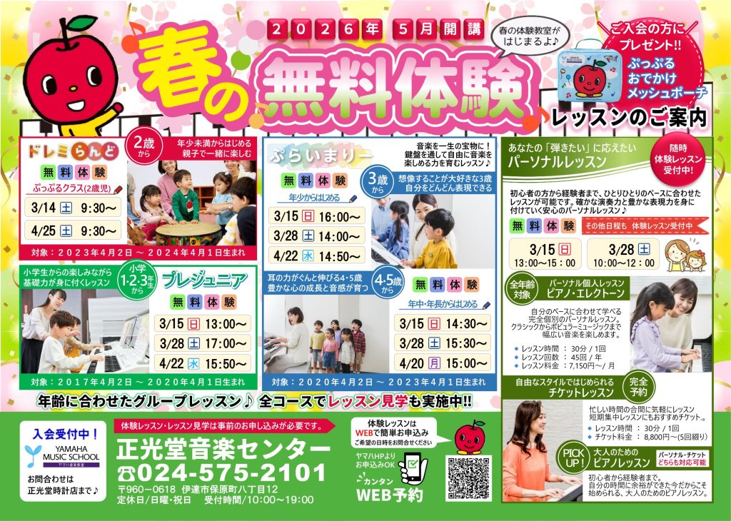 正光堂ヤマハ音楽センターでは、2026年5月開講の『春の入会受付』を開始!!